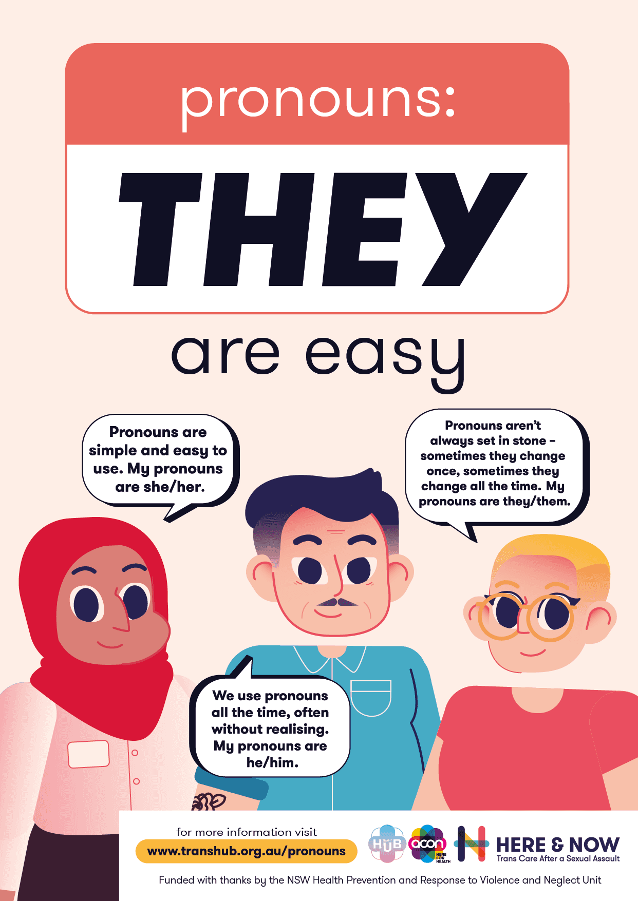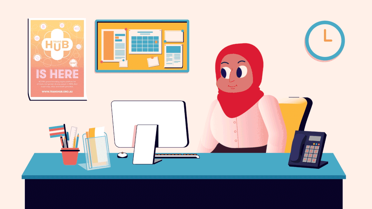 Here & Now is a four-part animated series created in partnership with Transhub and ACON Health. The project was developed to support trans and gender diverse people navigating the healthcare system following experiences of sexual violence, while also providing targeted training for the clinicians who deliver this care.