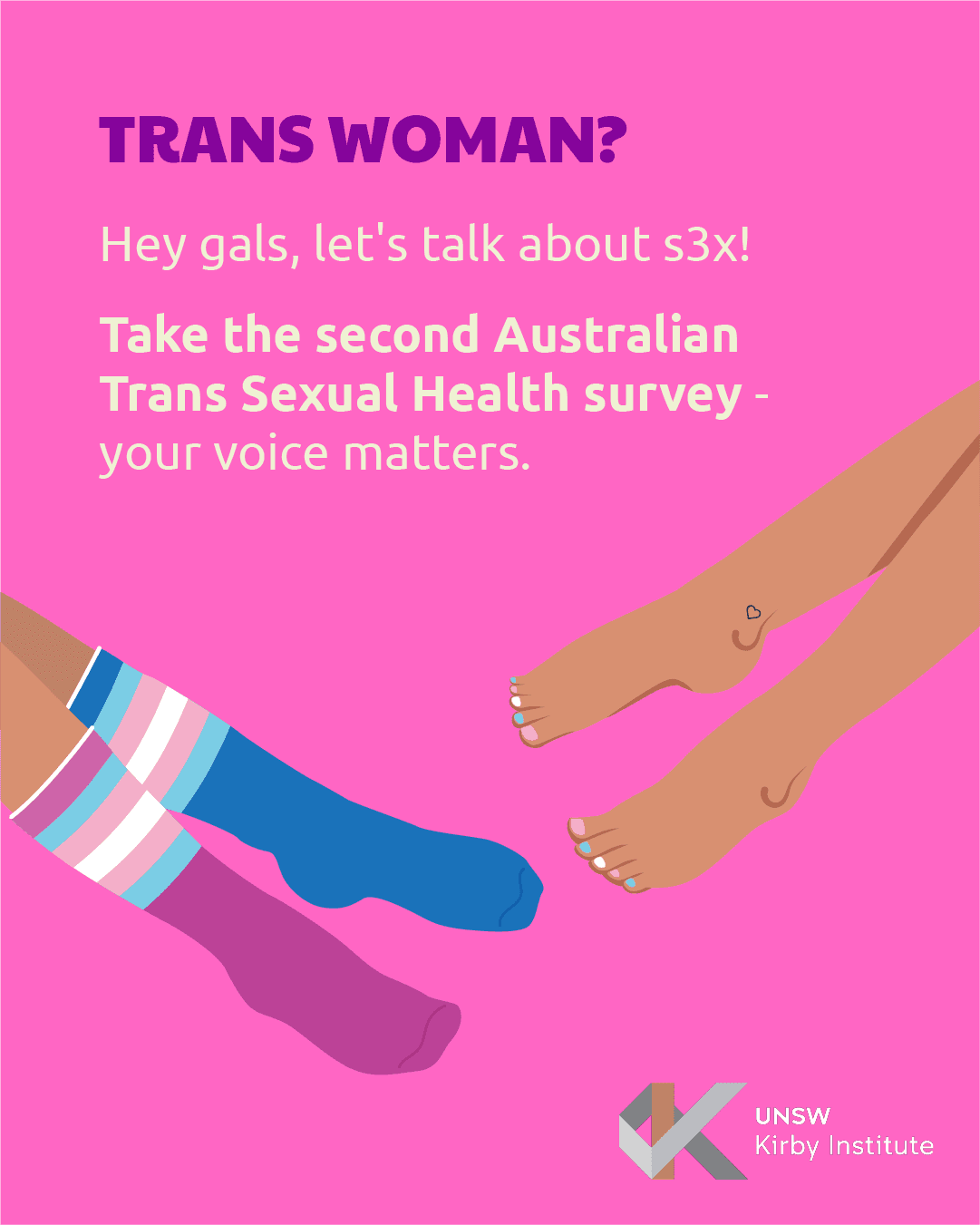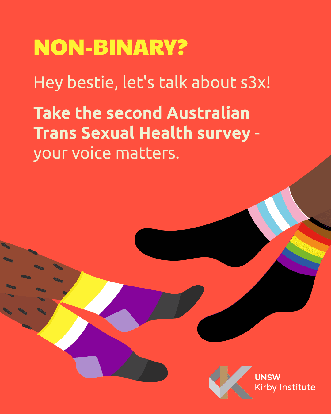 We worked with UNSW and The Kirby Institute to create a small but impactful social media campaign promoting the Second Australian Trans & Gender Diverse Sexual Health Survey called the Second Australian Trans & Gender Diverse Sexual Health Survey Campaign.