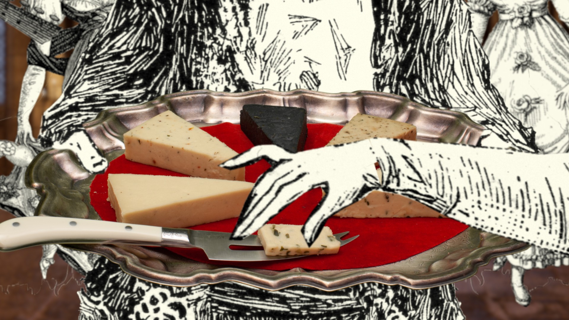 The real cheese was stop-motion animated on a green screen set, allowing us to isolate and manipulate the product in dramatic ways. We combined this with animated gothic imagery—sourced from stock archives and composited in After Effects—to create an atmospheric world around the cheese.