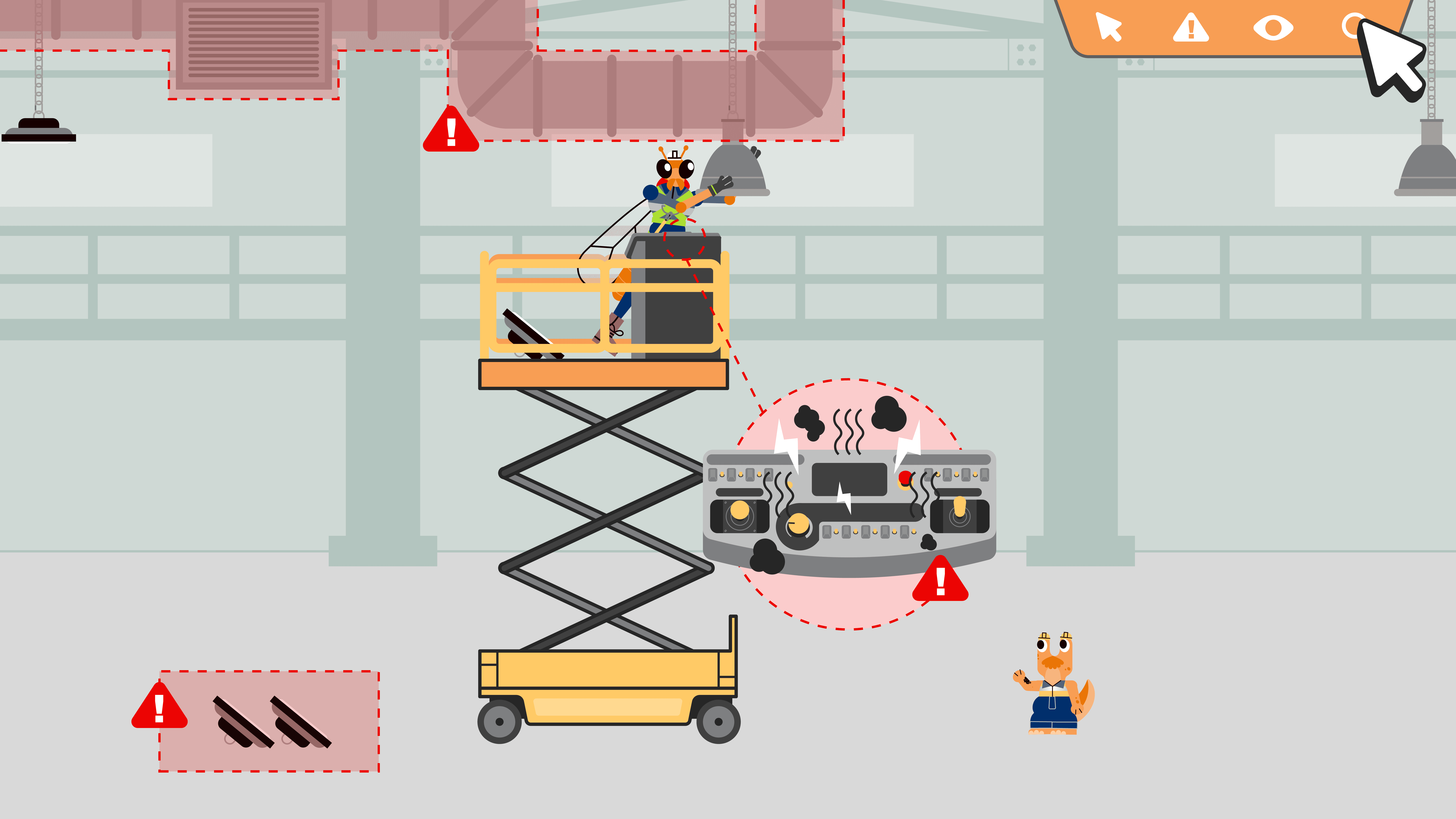 The videos feature quirky and original 2D characters designs with vivid, vibrant colours that make the content pop, helping to keep employees engaged. Their bold shapes, exaggerated proportions, and expressive faces make them feel approachable and fun, helping lighten the tone of serious topics like workplace safety. Despite their fantastical elements, there’s an accuracy to them—detailed PPE (Personal Protective Equipment) and realistic machinery connect them directly to the real-life situations they represent.
