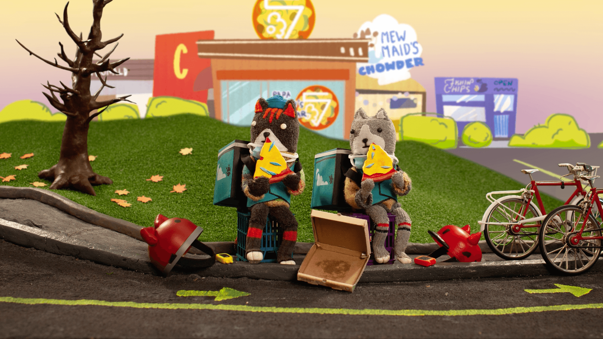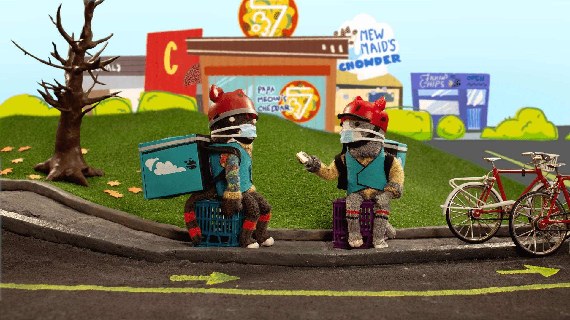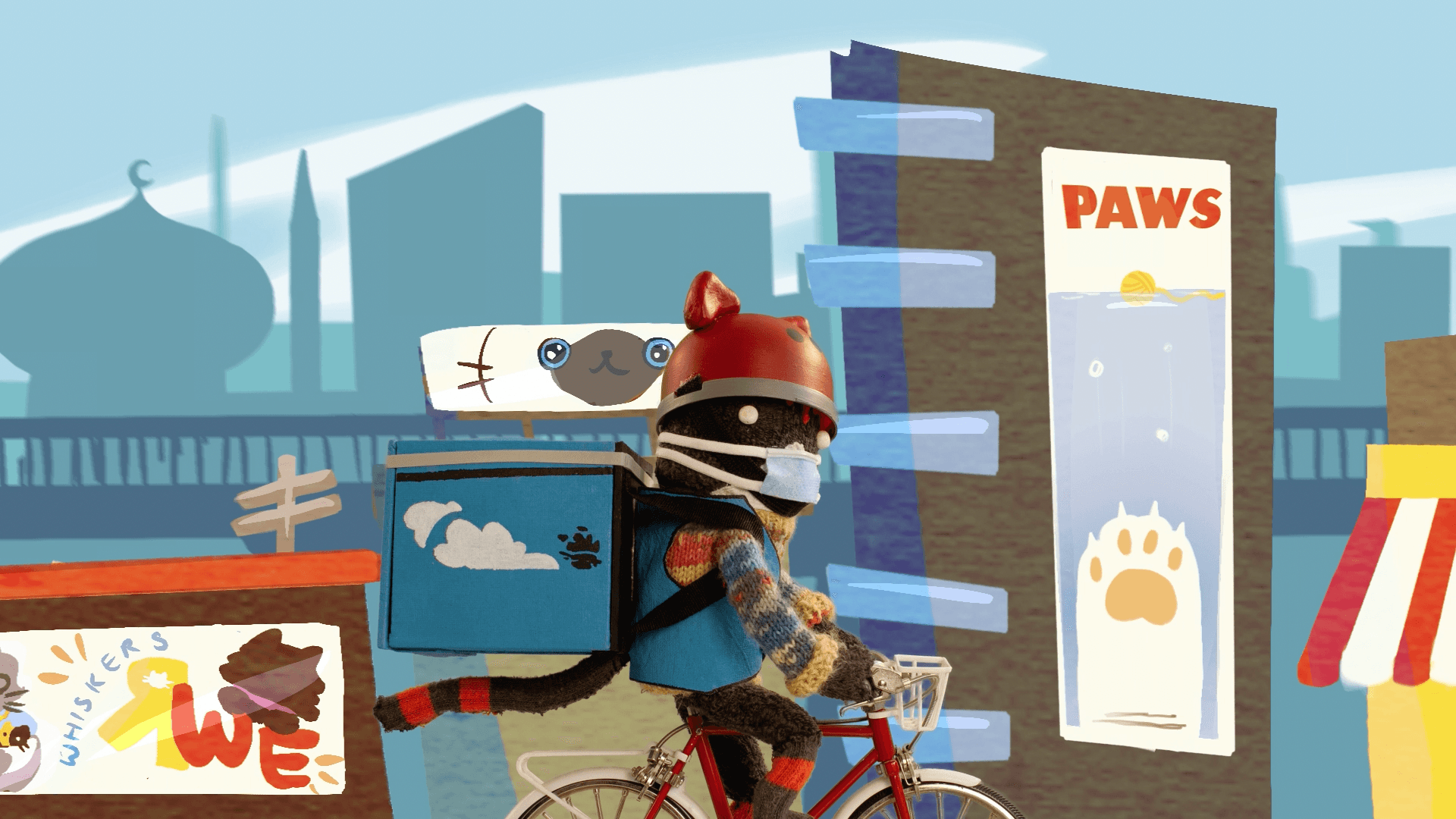 Zoomies was created using a mix of physical and digital animation, this three minute short tells the story of a foodie, or a bicycle food-delivery person… I mean cat. This working cat is struggling to make enough to eat in a big, busy city.